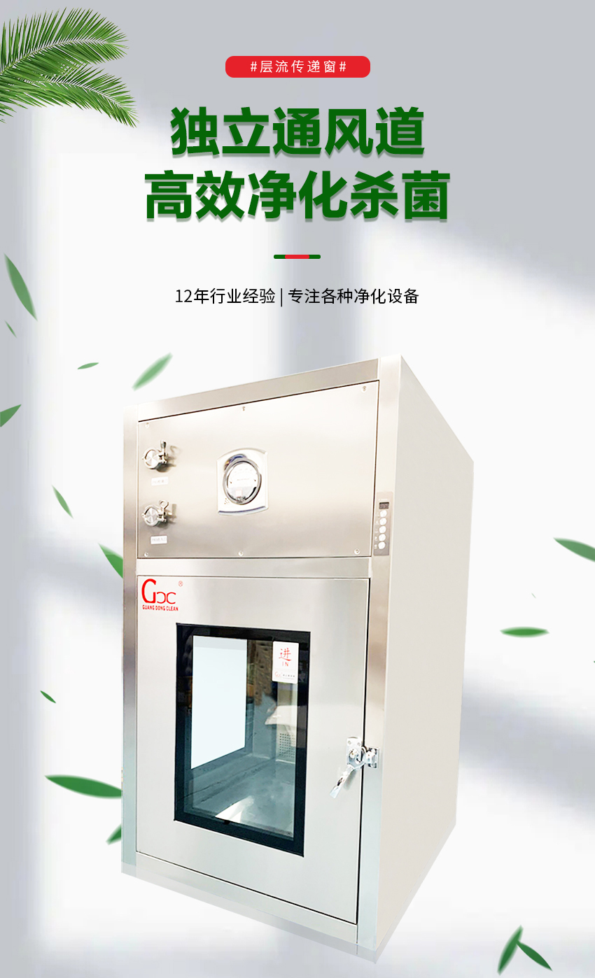層流傳遞窗是一種潔凈室輔助設(shè)備,主要用于潔凈區(qū)和非潔凈區(qū)之間或不同等級(jí)不同壓力的潔凈室之間傳遞小物件的傳遞,一方面起到氣閘的作用,不讓高級(jí)別的潔凈室中高壓被泄壓,另一方面在傳遞過(guò)程中實(shí)現(xiàn)自凈效果,以確保進(jìn)入潔凈區(qū)物品的自身潔凈,減少物品帶來(lái)的交叉污染;其吹淋時(shí)間可根據(jù)手動(dòng)開(kāi)關(guān)任意調(diào)節(jié),最大限度的達(dá)到自凈及節(jié)能的效果。