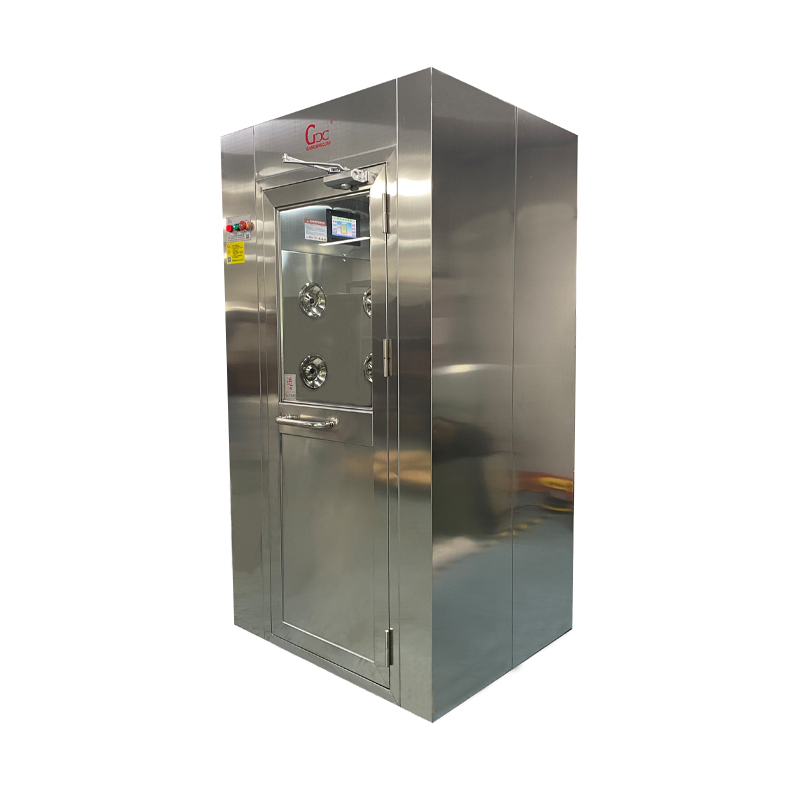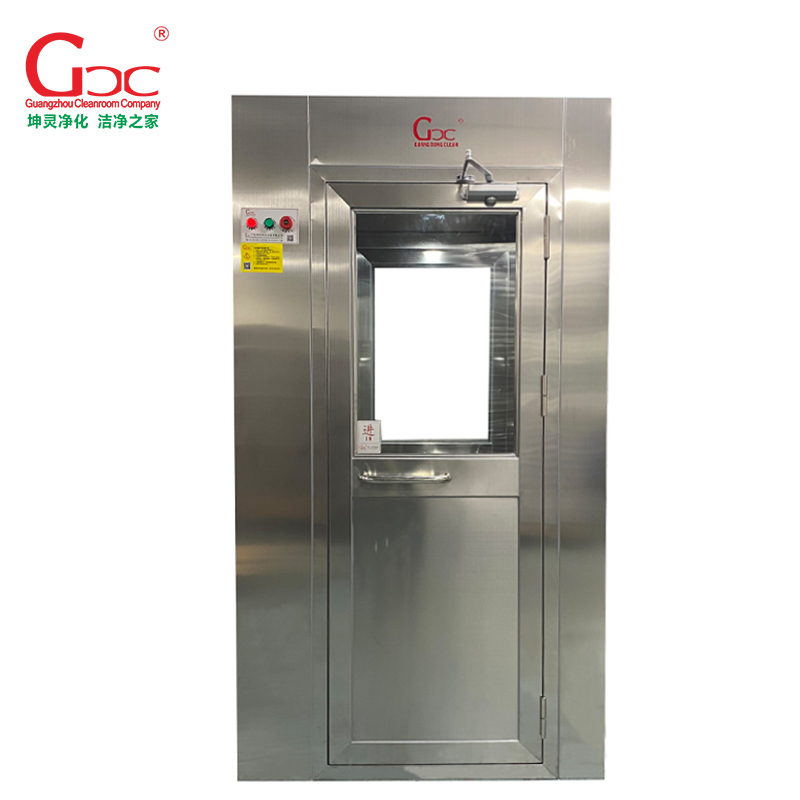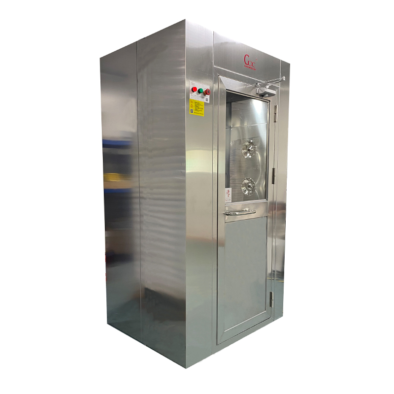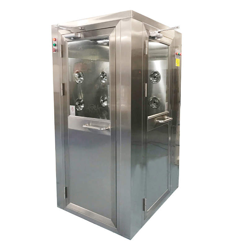 產品描述:風淋室是操作人員進入潔凈室時使用的人身凈化裝置,它利用高速潔凈氣流吹淋除掉進入室內人員身上的污物,以便有效除去人身上的灰塵,并阻止外界污染進入潔凈區域,風淋室內的空氣是由風機的初級過濾器進入靜壓箱,再經過高效過濾器過濾后再從風淋室的噴嘴高速噴出,雙重高效過濾,噴嘴角度可隨意調節,能有效地吹除人或物品表面吸附的塵埃,吹下的塵埃再進入初效空氣過濾器進行過濾,如此循環。